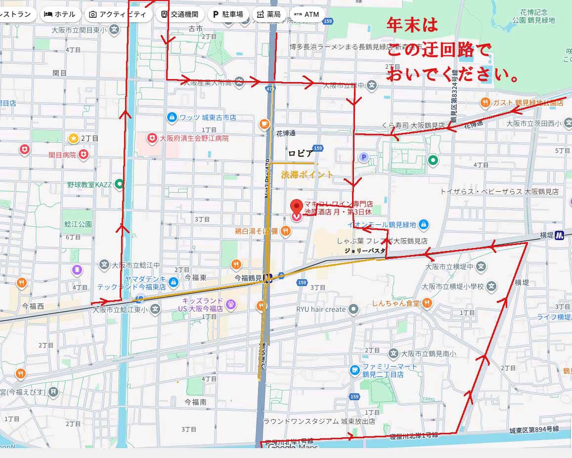 年末はこちらで迂回ください。特にロピアオープンの10時からあとの
