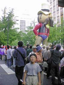 大阪市が御堂筋を交通規制して行うという気合いの入った行事。全国はもとより、世界から4キロの行程を4車線いっぱい使ってパレードする。