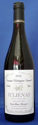 ジュリエナの小高い丘の中腹にあるこのドメーヌは、先祖代々、この地でワイン造りをしてきた。今のジャン・マルクで、5代目となる。このところ、フランスでも話題になりつつあるモネ氏のワインは、フランスのル・ポワン紙でジュリエナのアペラシオン70ドメーヌのブラインドテイスティングにて、2000、2001年とも群を抜いて一位に選ばれた。つい最近では、三ツ星レストラン、ギー・サヴォワのソムリエが選ぶ一本として料理雑誌に紹介されたほどである。彼のジュリエナの畑は海抜250メートルにあり、土壌の凝縮度が高く、ブドウ作りにとても適していてテロワールの表現がしっかりワインに出る。