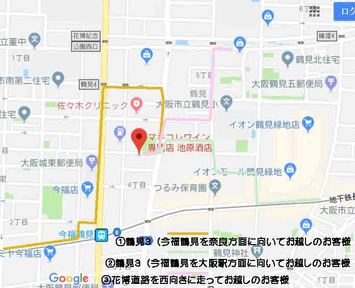 地下鉄鶴見緑地線 今福鶴見駅 3番出口からお越しの方