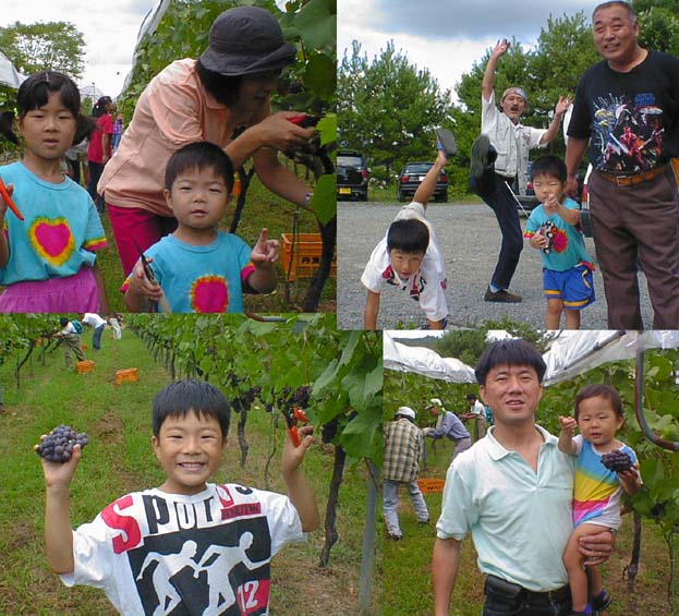 丹波ワイン(京都) 2000.09.03 当日は暑くもなく寒くもなく 葡萄の収穫を楽しみました。なぜか、うれしいぶどう狩り。このぶどうは 特別限定醸造の『ぶどうのひとりごと』として出荷されます。